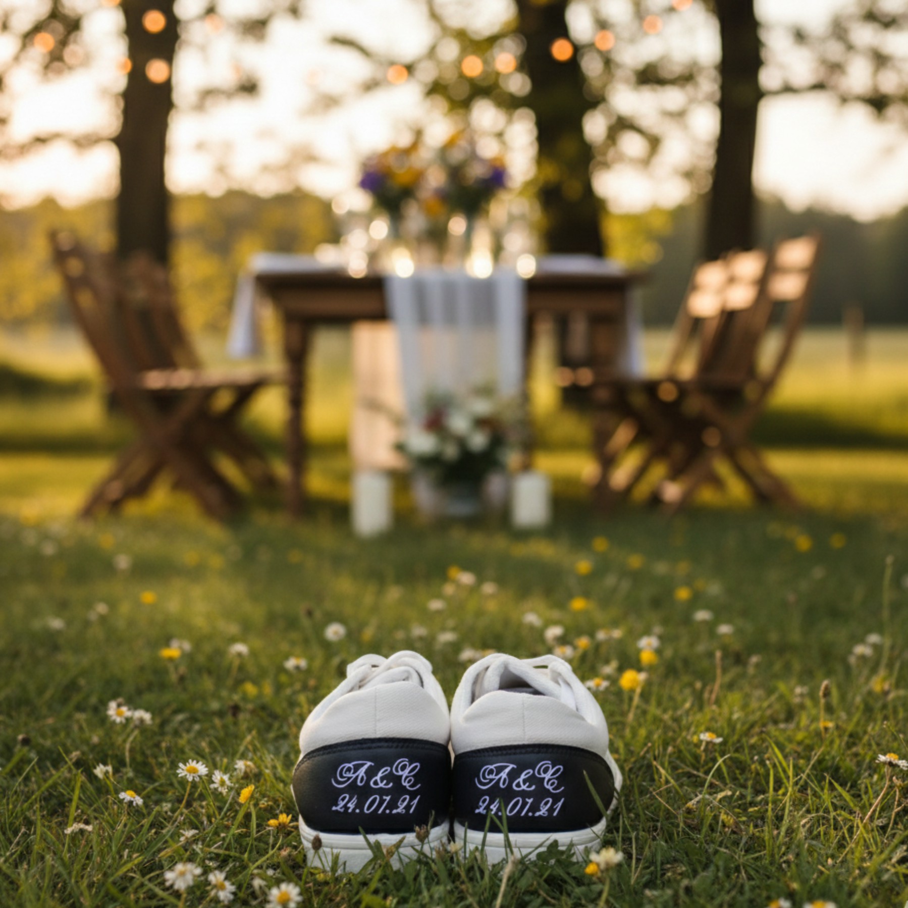 Ajoutez une Touche Personnelle à Votre Grand Jour: Optez pour des baskets de mariage personnalisées qui reflètent votre personnalité et assurent votre confort tout au long de la cérémonie. Commandez dès maintenant et préparez-vous à marcher dans l’allée avec style!
