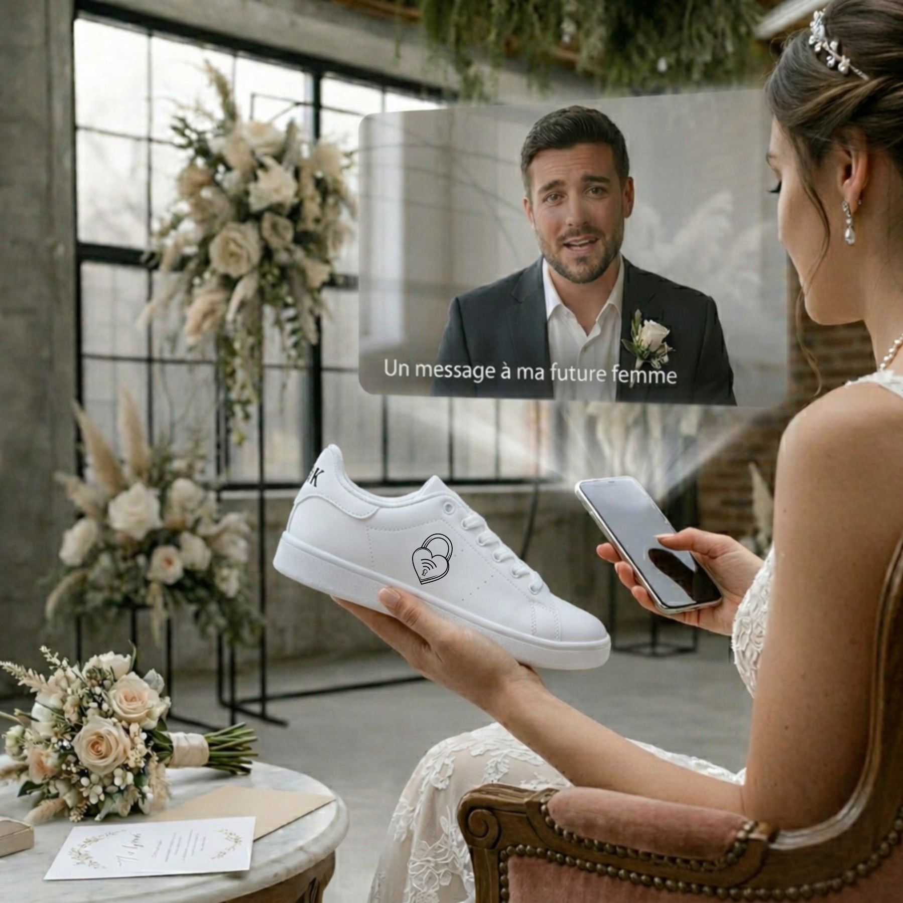 Imaginez un message tendre, votre chanson « coup de foudre » ou une vidéo souvenir, dissimulés au cœur même de vos sneakers. Portez avec vous une émotion invisible que vous seule (ou votre moitié) pourrez révéler d’un simple geste.